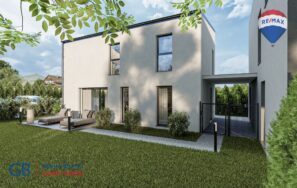 📐 Užitná plocha jednotky činí přibližně 104 m² (bude upřesněna po dokončení stavby) a je rozložena do dvou podlaží. V přízemí se nachází zádveří, samostatná toaleta, technická místnost a hlavní obytný prostor s kuchyňským koutem a přímým vstupem na terasu o velikosti 20 m². Patro nabízí dva dětské pokoje, ložnici a koupelnu. Součástí je také vlastní zahrada o výměře cca 270 m², která poskytuje prostor pro odpočinek nebo rodinné aktivity.
