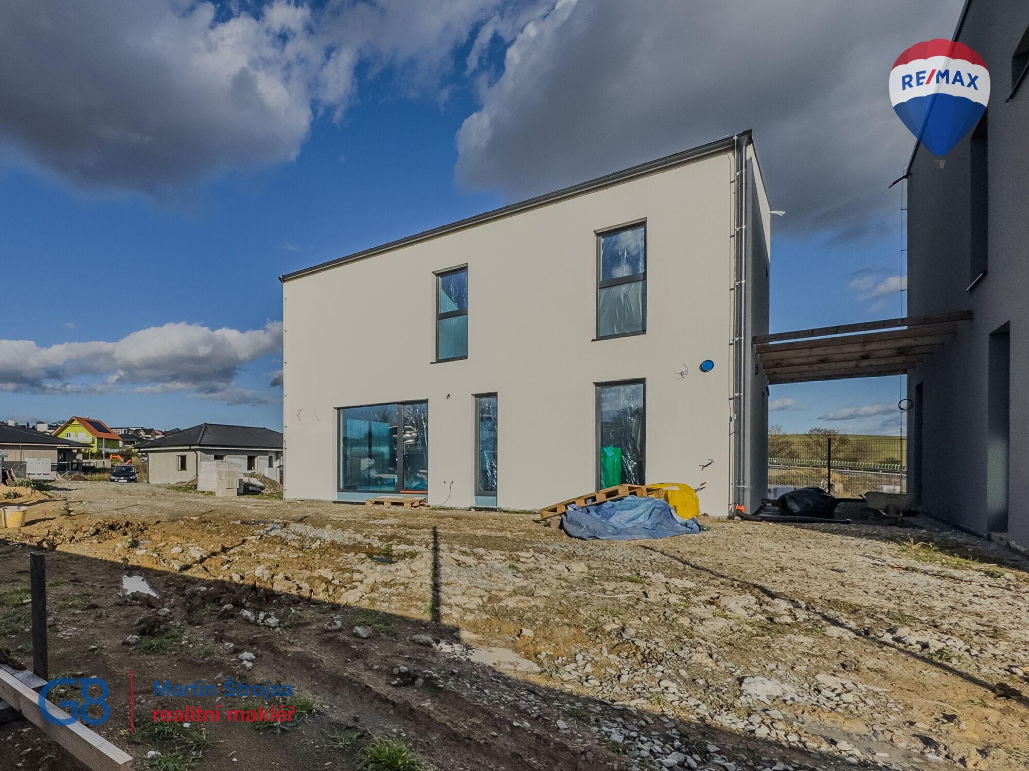🔌 Nemovitost bude napojena na elektřinu, vodu a obecní kanalizaci. Energetická náročnost bude odpovídat nejlepší třídě A – tedy mimořádně úspornému bydlení. K jednotce náleží dvě parkovací stání a samozřejmou součástí dokončení budou také terénní úpravy, kompletní oplocení a zpevněné plochy. Dešťová voda bude svedena do retenční nádrže.