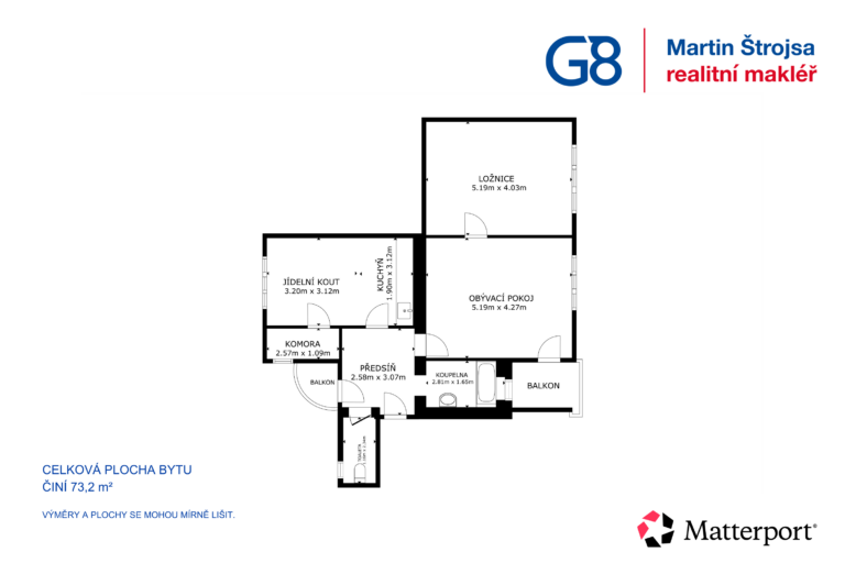 Prodej bytu o dispozici 2+1 s lodžií a balkonem, 73 m2,
