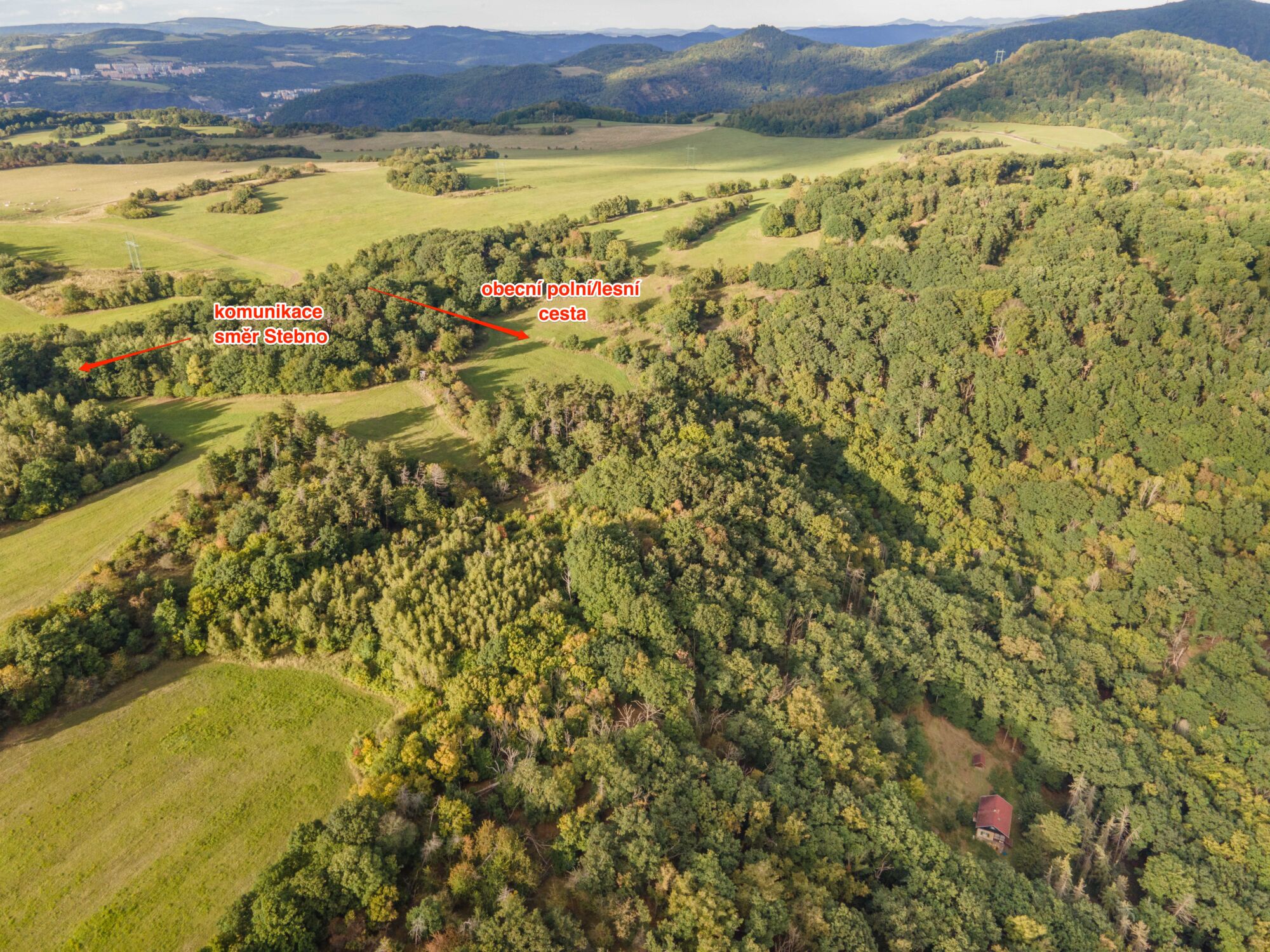 📍 Nejbližší občanskou vybavenost naleznete v obci Stebno, širší zázemí pak v nedalekém Ústí nad Labem, které je snadno dostupné do 10 minut autem.