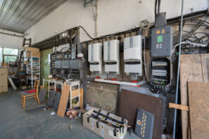 Z inženýrských sítí je objekt napojen na obecní vodovod, elektrickou energii a odpad je sveden do společného septiku. Součástí prodeje je rovněž veškeré stávající vybavení, převážně elektrozařízení a součástky (v minulosti se zde působící společnost zabývala mimo jiné výrobou a vývojem úsporných regulačních zařízení). Za halou se nachází zahrada se zahradním domkem, která není předmětem prodeje.