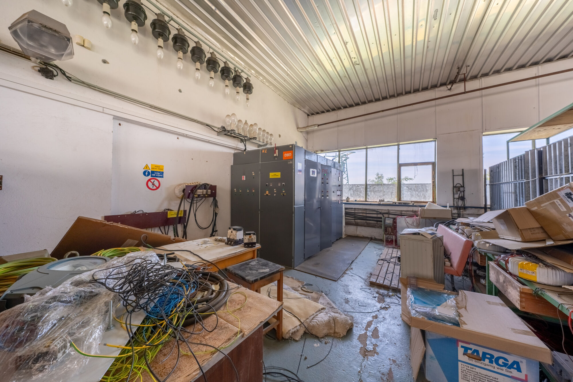 Součástí prodeje je také vlastní trafostanice (generální oprava před 2 lety), která spolu s FVE zajišťuje dostatečné energetické kapacity pro celý areál. Hala je dispozičně rozdělena na kancelář, technické zázemí, prostor pro sociální zařízení a tři prostorné oddělené skladovací nebo výrobní prostory. Přístup do haly zajišťují jedny automatické sekční vrata (z roku 2023) a dvoje starší plechová vrata. Objekt je vybaven kamerovým systémem, vjezd do areálu je zabezpečen závorou, kterou lze ovládat dálkově i přes telefon.